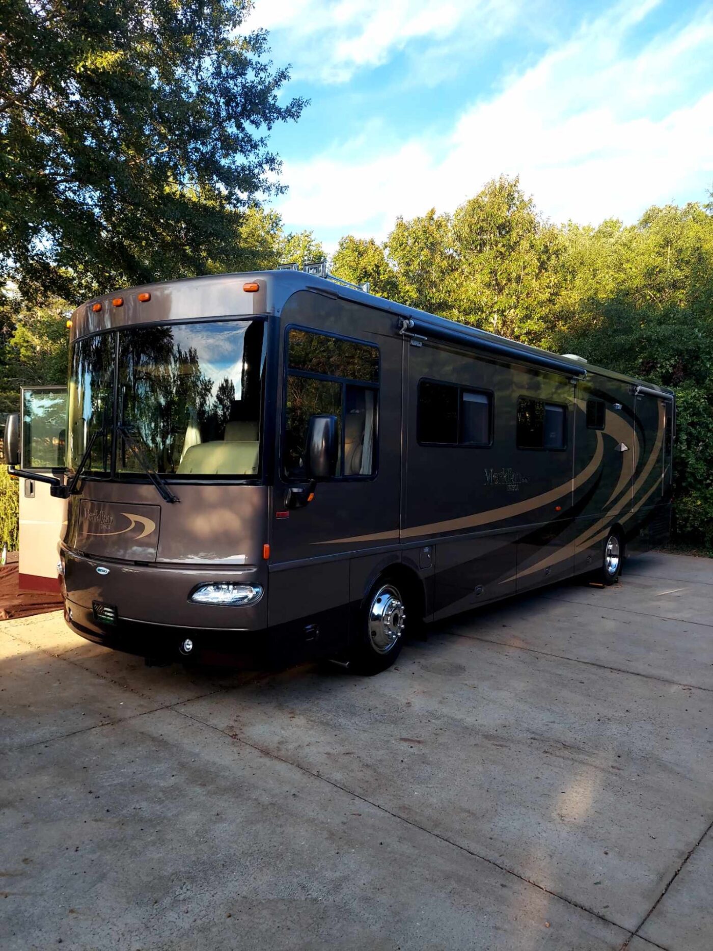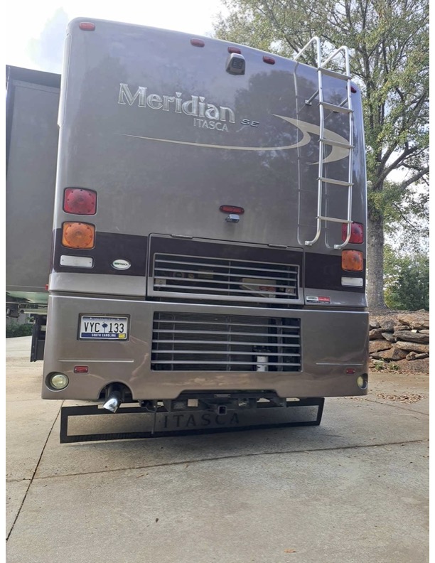 2006 Itasca Meridian 36SG A Class with 2 Slides and 63,000 Miles. Full Body Paint with Clear 3M Front Mask on Exterior, 36 Feet in Length with a 300 HP Cummings Diesel Engine, Allison Transmission, Freightliner Chassis, Power Mirrors with Heat, 7.5 KW Onan Generator with 792 Hours, Patio Awning, Slide Out Room Toppers, LP / Electric Water Heater, SOLAR Panel and Inverter, Central Heat & Air, LP or Electric 4 Door Refrigerator, Convection Microwave Combo Oven, 3 Burner Gas Stove Top, Solid Surface Kitchen and Bath Counters, Washer Dryer Combo, 2 LED TV”S, Jack Knife Sofa, Memory Foam Queen Mattress, Full Size Wardrobe in Rear Bedroom, 2 Color Back Up Cameras with New HD Monitor, Front to Back Wood Grained Laminate Flooring, Under Cargo Storage, Remote Keyless Entry, Aluminum Wheels, 10K Trailer Hitch- Personal items will be removed prior to sale. Text to 864-494-5084