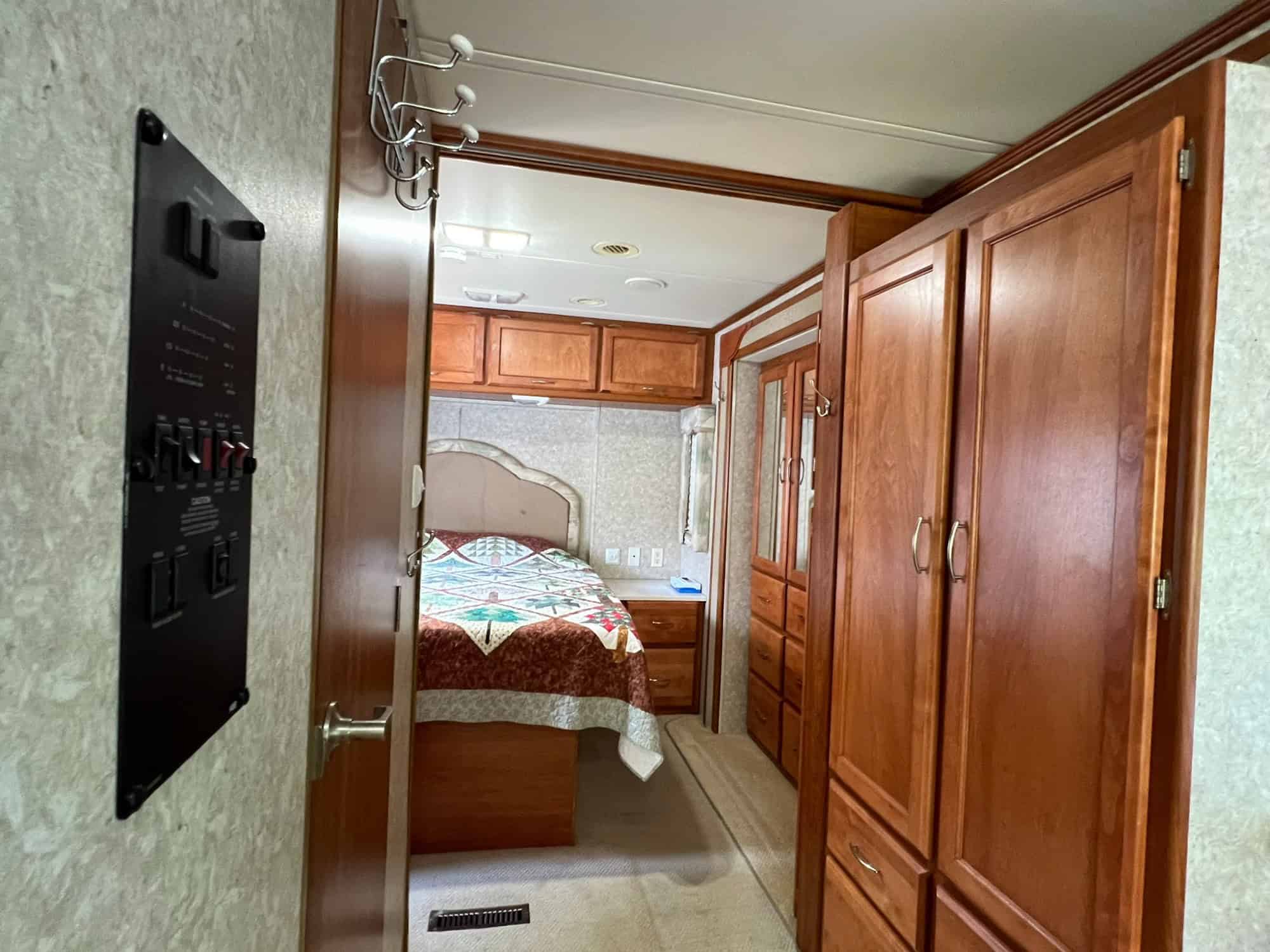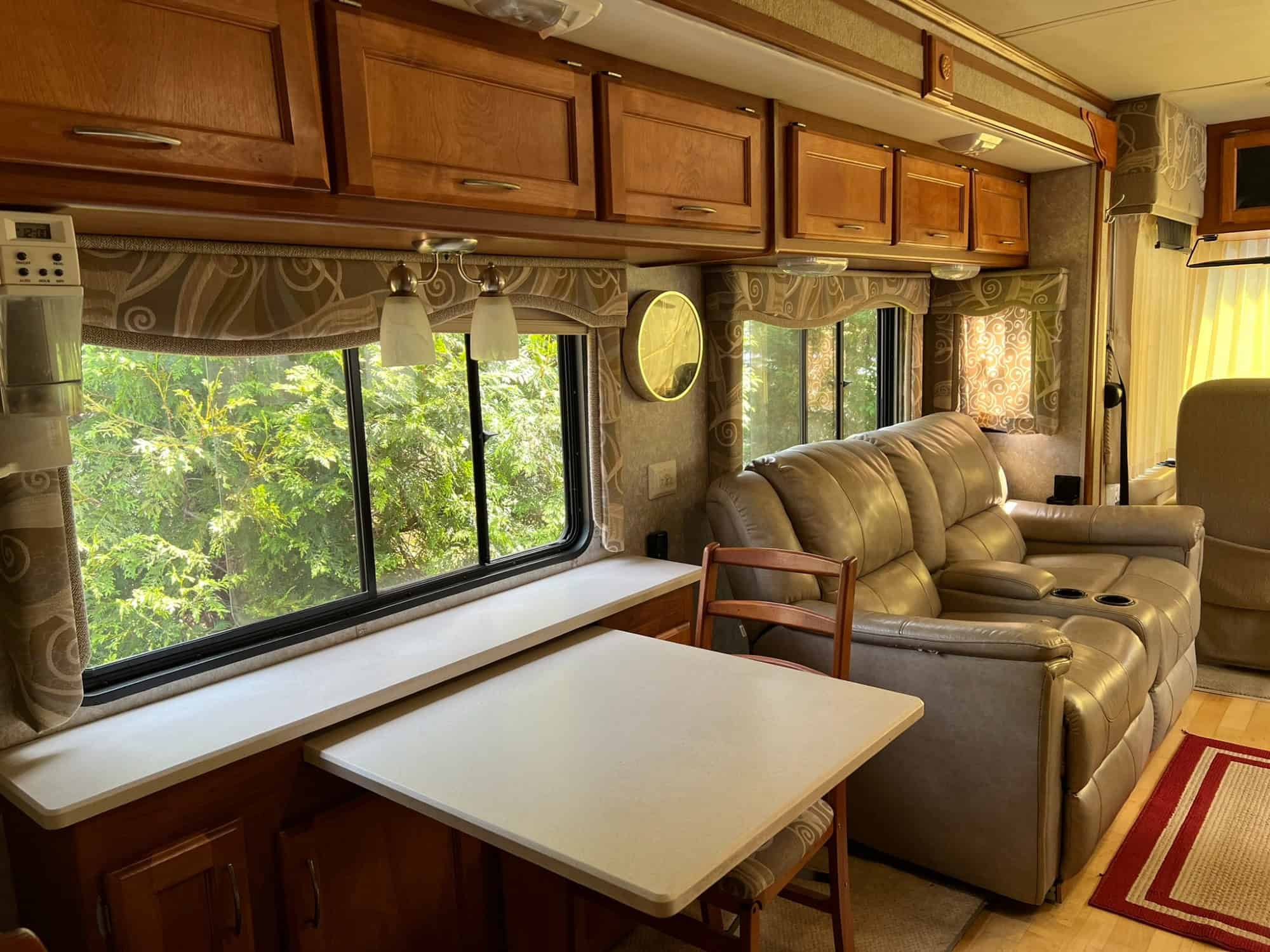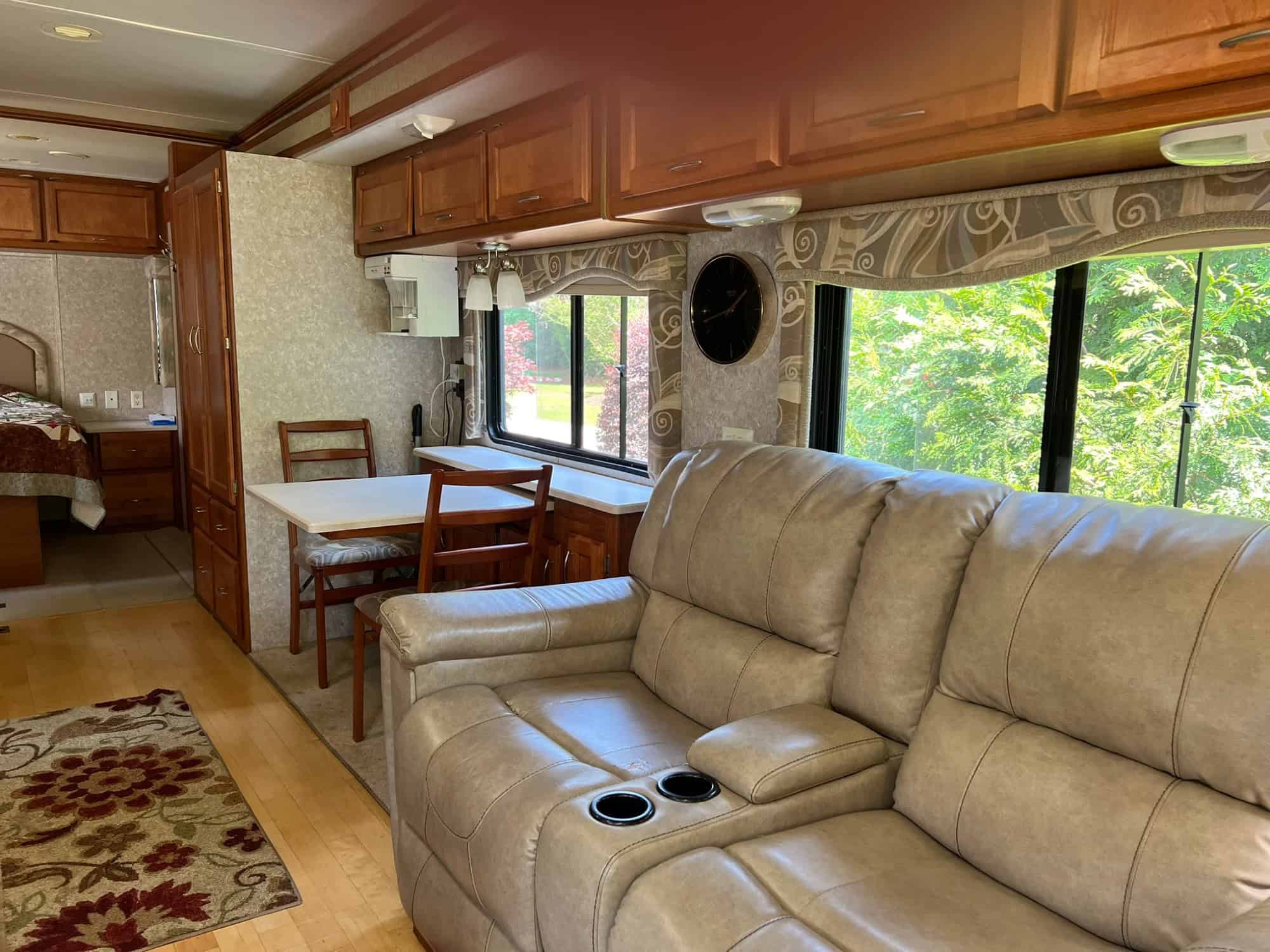 Our Monaco has been well maintained and we have made many upgrades from the original model. Major upgrades include: anti-sway bar, power awning, new more powerful air conditioner, Corian kitchen countertop, porcelain toilet, maple engineered wood flooring, LED ceiling lights, and brass shower fittings. Two rear tires and the ceiling fans are due to be replaced.