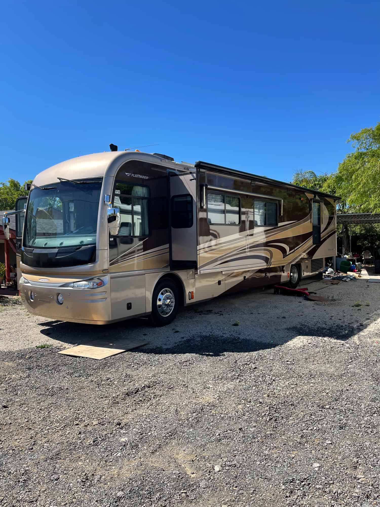Imagine driving off to all of your favorite destinations in this Fleetwood Revolution Class A coach.