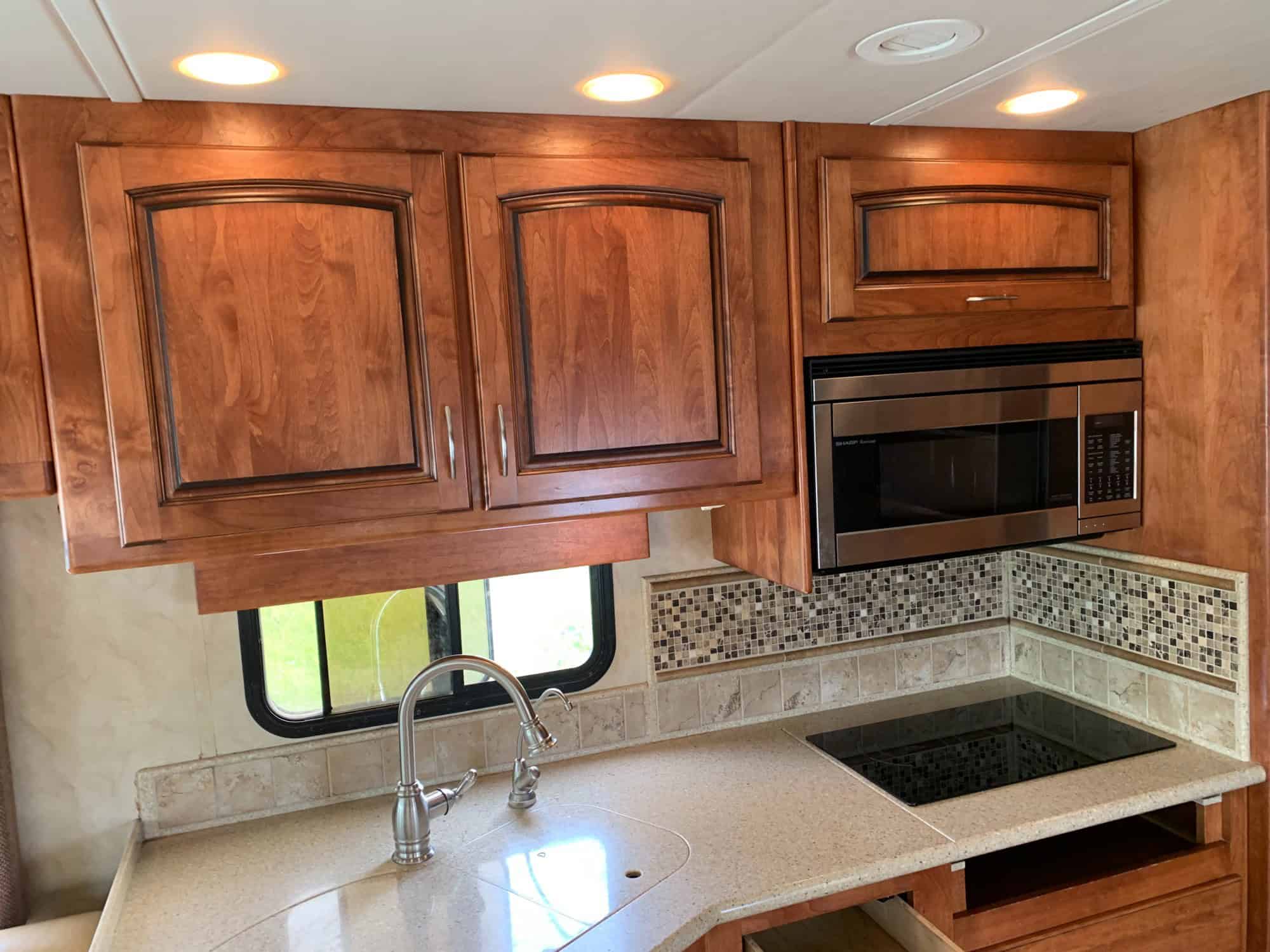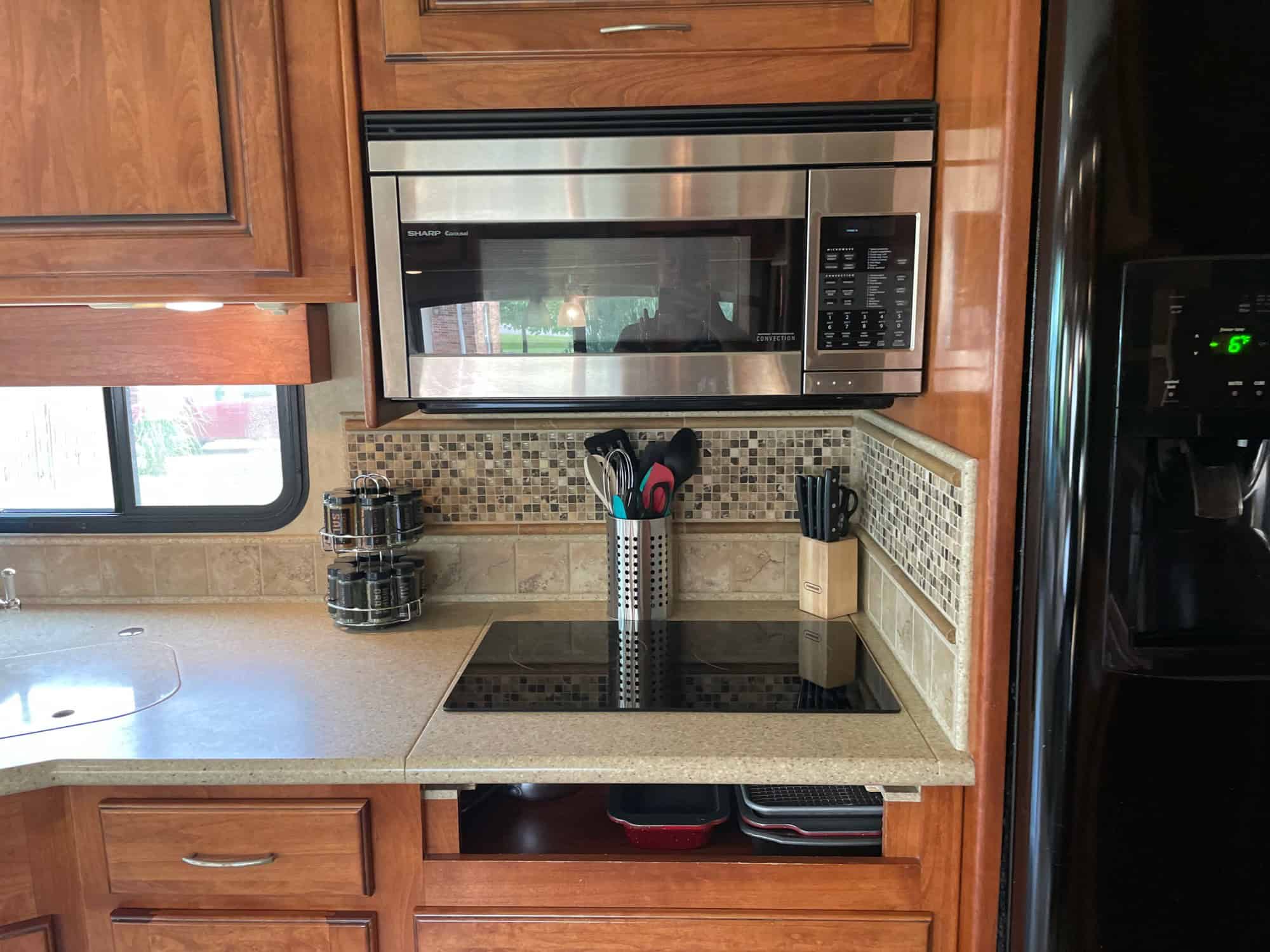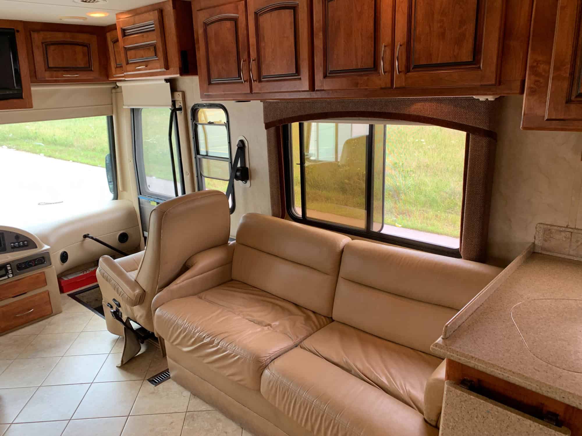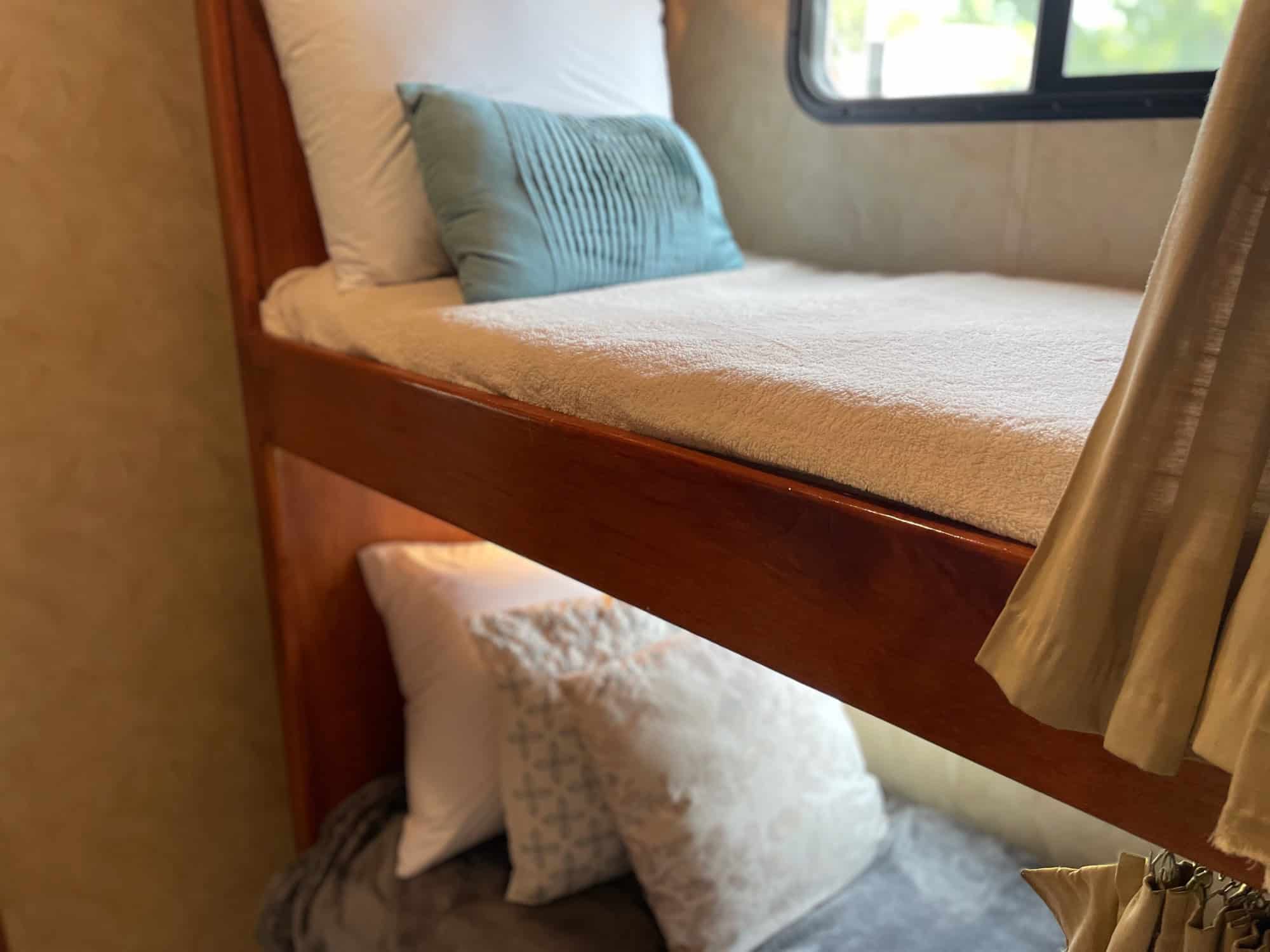 Bunks! New Tires! New House Batteries! Triple Slide Monaco Knight Motor Home, Wardrobe, King Bed/Nightstands, Bunk Beds w/Flip Down TVs Above Each Bunk Linen, Shower, Vanity, Toilet, Booth Dinette/Sofa Slide, Sofa, Flip-Up Counter, Double Kitchen Sink, 2-Burner Induction Range, Convection Microwave, Full Residential Refrigerator, 32″ LCD TV/Dresser Slide, Overhead Cabinets Throughout & Much More. 40″ TV removed and replaced with pantry (shelves are the perfect size for OXO Good Grips pop container set), but a TV could be put back if desired. The back closet has been converted to a bunk bed but could be easily removed. Washer/Dryer cabinet was converted into a closet but can be changed back to washer/dryer cabinet. Has hole drilled in counter (capped) for water filter hook-up. We removed old gas range and replaced with induction range. Cook just like you do at home (we did for 2 years)! Satellite TV system is installed. Lots of extras come with the motorhome (Garmin RV 760LMT portable GPS Navigator with friction and window mounts, WiFi Ranger, weBoost 4G-X Cell Signal Booster, spare light bulbs, spare drawer/cabinet parts, new inline water filter, 25′ culinary-rated hose), king intelligel (think purple, but better) bed Non-smoking and no pets!