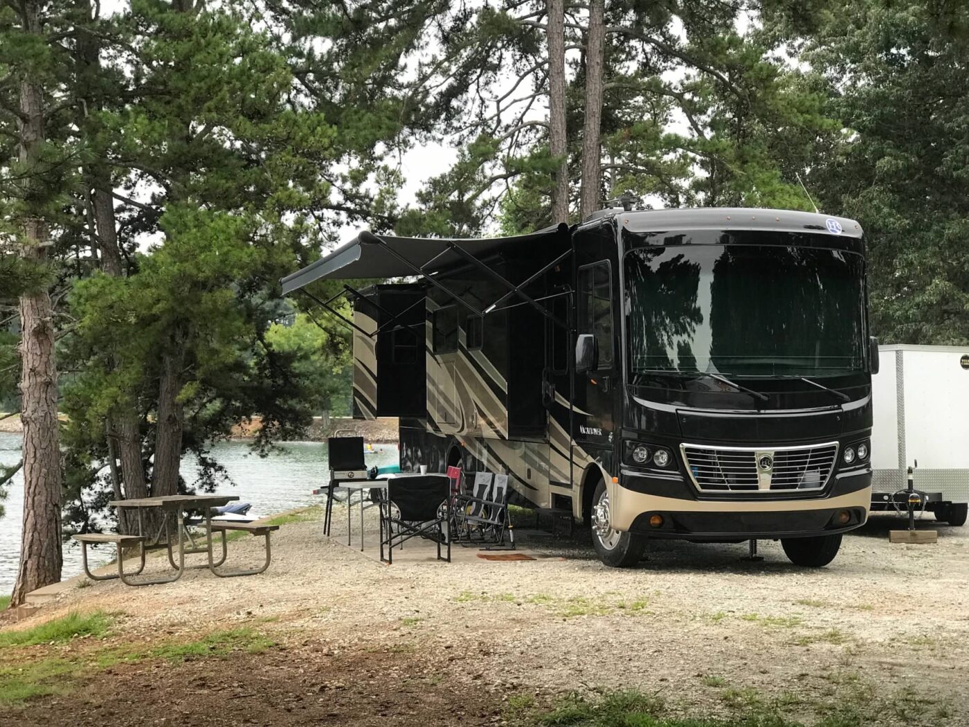 This Price of $69,997 will on be good for next 10 days, Price ends on 02/06/2023 for this 2015 Holiday Rambler Vacationer 36SBT, The Vacationer 36SBT from Holiday Rambler offers triple slides and a u-shaped dinette. As you step into this class A motorhome, to your right over the driver’s and passenger’s seats you will find overhead cabinet storage. The living space is wide open thanks to two slide outs that are opposite each other. On the driver’s side, a slide provides a u-shaped dinette, a pantry, a refrigerator and a buddy chair as well as some overhead cabinets for storage. The slide on the passenger’s side includes a 3-burner range with overhead microwave, an angled double kitchen sink, a sofa with a shelf behind it and overhead cabinets the width of the slide. There is a 39″ LED TV mounted mid coach to face the front of the coach so that it is easily viewed from all of the seating. Moving back, the side aisle bathroom includes storage, a corner shower, a corner vanity sink, a medicine cabinet and a toilet. The rear bedroom includes a queen bed slide out with nightstands on each side and overhead cabinets The wall opposite the bed includes a large wardrobe and a 24″ LED TV. Kitchen floor has a scuff mark, Jackknife Couch needs to be redone at some point, passenger side rear corner at bottom and small place at back scuffed from trailer rubbing into it, other than these 3 items everything in Super good shape. We are selling our Beautiful RV to upgrade to a Diesel unit.