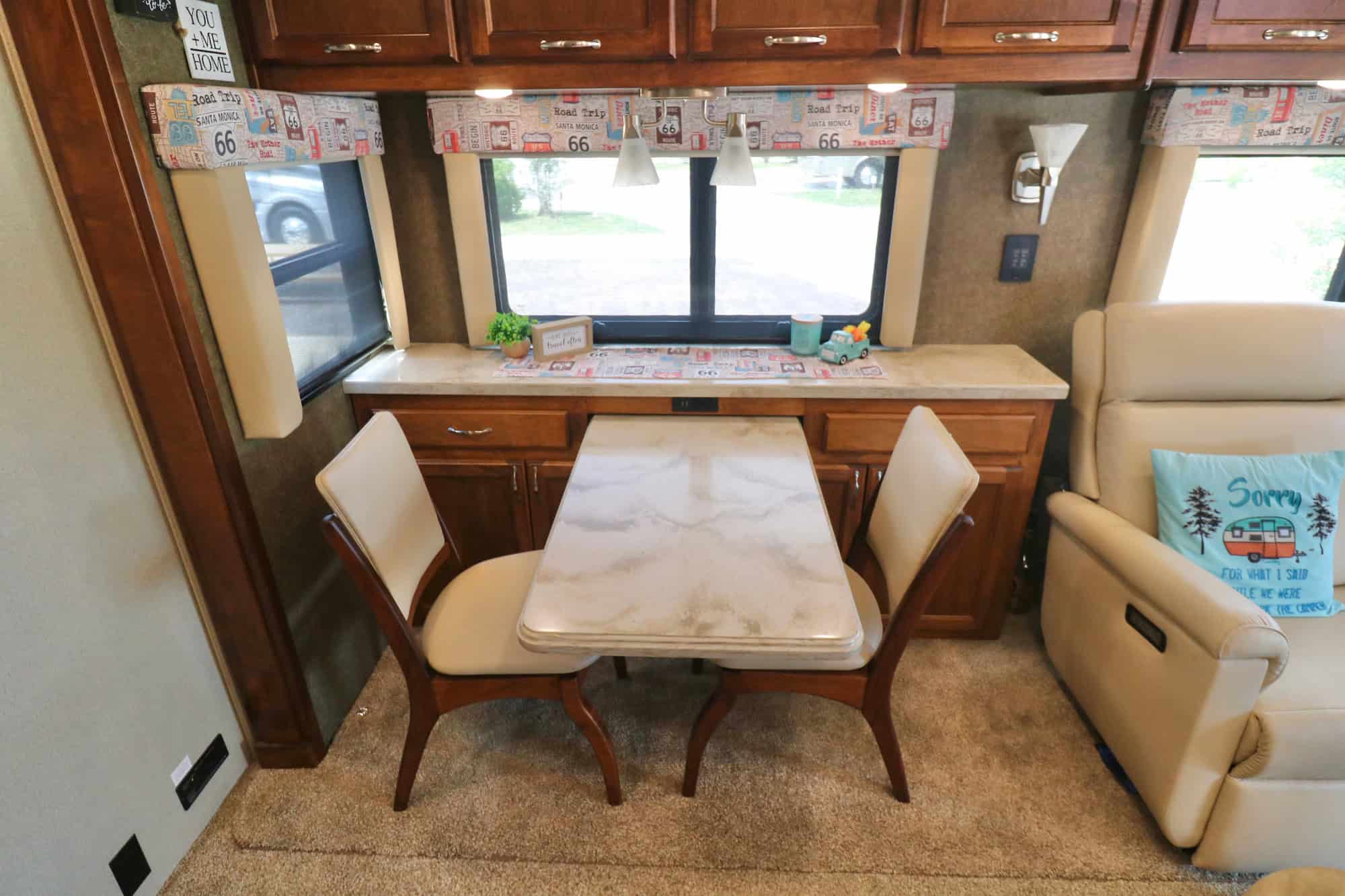 2019 Renegade Verona 36VSB: 35,150 miles; Freightliner M2-106 Business Class chassis; Cummins L9 8.9L (350hp) diesel engine; 1,000 ft lbs torque; Allison 6spd automatic transmission; Bridgestone tires 295/75R22.5); Cruise control; 8kW Onan generator (358.2 hours); Magnum 2000 watt inverter; 50amp electrical service connection w/Southwire SurgeGuard protection; (2) air conditioners (one with heat pump for electric heating); Equalizer Systems auto-leveling system; 34,000 btu gas furnace; (2) slides w/slide toppers; Carefree power awning w/LED lighting; (2) TPMS systems (factory & aftermarket TST) to monitor coach & toad tires; stored fully enclosed when not in use & VERY RIGOROUSLY maintained (w/records, filter numbers, extra filters, etc.). Located in Greenwood, SC. CAPACITIES & DIMENSIONS: interior height 7ft 0in; overall length 36ft 10in; exterior height 12ft 8in; fuel capacity 2x50gal tanks (~80gal usable); fresh water capacity 150 gallons (w/whole-coach water filter); gray water capacity 75 gallons; black water capacity 75 gallons; propane tank capacity 24.2 gallons. INTERIOR: 18 cu ft Samsung French door stainless steel refrigerator w/filtered ice maker; High Pointe convection microwave; (3) burner propane cooktop; stainless sprayer kitchen faucet (w/water filter); central vac system; Splendide washer & dryer; queen size bed; single bath; (2) Samsung TVs (43” w/soundbar and 32”); LVT flooring throughout; Soft touch padded vinyl ceiling; solid surface countertops throughout; tile backsplash; one-piece radius fiberglass shower; Thetford Tecma macerator toilet; LED lighting throughout. EXTERIOR: keyless-entry door lock; 20,000lb towing capacity; Load-share helper airbags (front); plumbed for pneumatic (e.g. Air ForceOne) toad braking system; wired for electric-brake trailer towing w/Curt brake controller; outdoor entertainment center w/(1) Samsung TV (32”) and Jensen stereo (Bluetooth, DVD); roof-mounted TV antenna & Winegard; side-view cameras. OWNER UPGRADES (over $12K): Pinnacle air-ride & heated cab seats; rear suspension air dump valve; Micro-Air EasyTouch RV thermostat (Bluetooth & WiFi); Crossfire rear dual wheel equalization system; Saf-T-Plus steering stabilizer control unit; TST TPMS system; Lambright Harrison UltraLeather covered power theater seats; behind theater seat storage; Lambright swivel UltraLeather and cherry wood chairs; Custom-built credenza w/storage, power (100v & USB) outlets & matching solid-surface countertop; popular King-to-Queen bed conversion; lightened/brightened window valences; Garmin RV890 navigation; dedicated (always on while driving) rear-view camera; Sony in-dash stereo (Bluetooth, CarPlay); UltraLeather padded headboard; thermostatic shower water controller, slide-out toolbox in storage bay; power (110V & USB) outlets in exterior entertainment cabinet, Snap-Pad leveling jack pads; gloves & hand cleaner caddies in water bay.