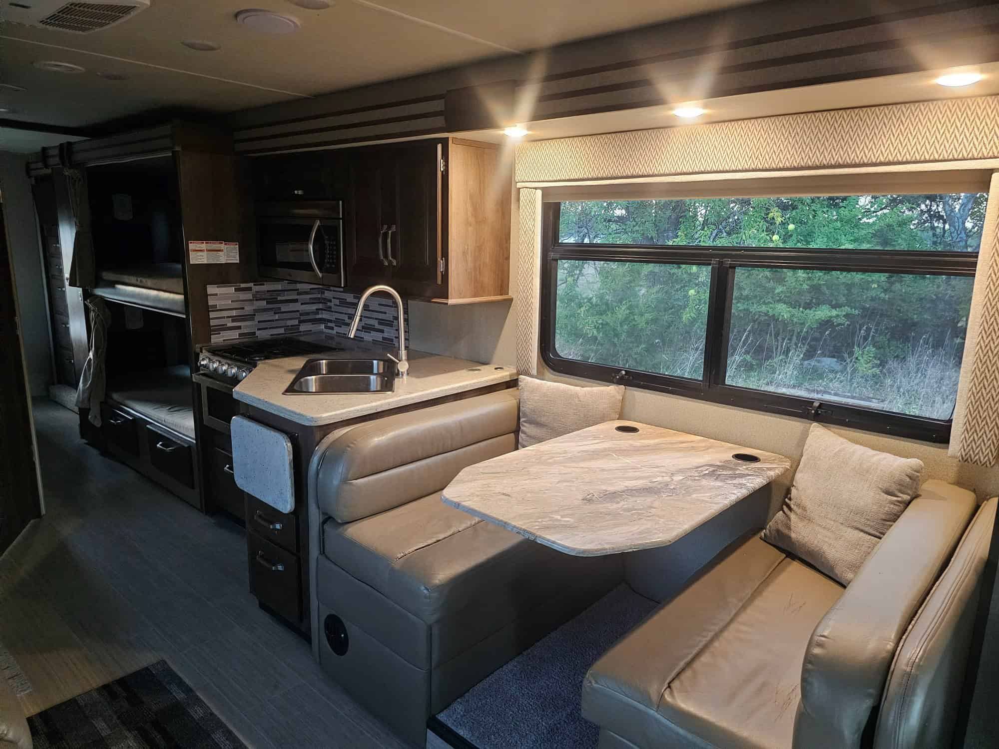 Discover the joy of family adventures in this well maintained 2020 Entegra Esteem 31F, lovingly cared for and ready for your next getaway. This Class C motorhome has been our trusted companion for two years of unforgettable family trips, offering ample space and comfort for everyone. It is designed with family-friendly features, emphasizing spaciousness and ease of use. With a cozy loft, two bunk beds, and pull-out sleeping options from the table and couch, it easily accommodates kids and guests. The private rear queen bedroom feels spacious and inviting, perfect for relaxing after a day of exploration.