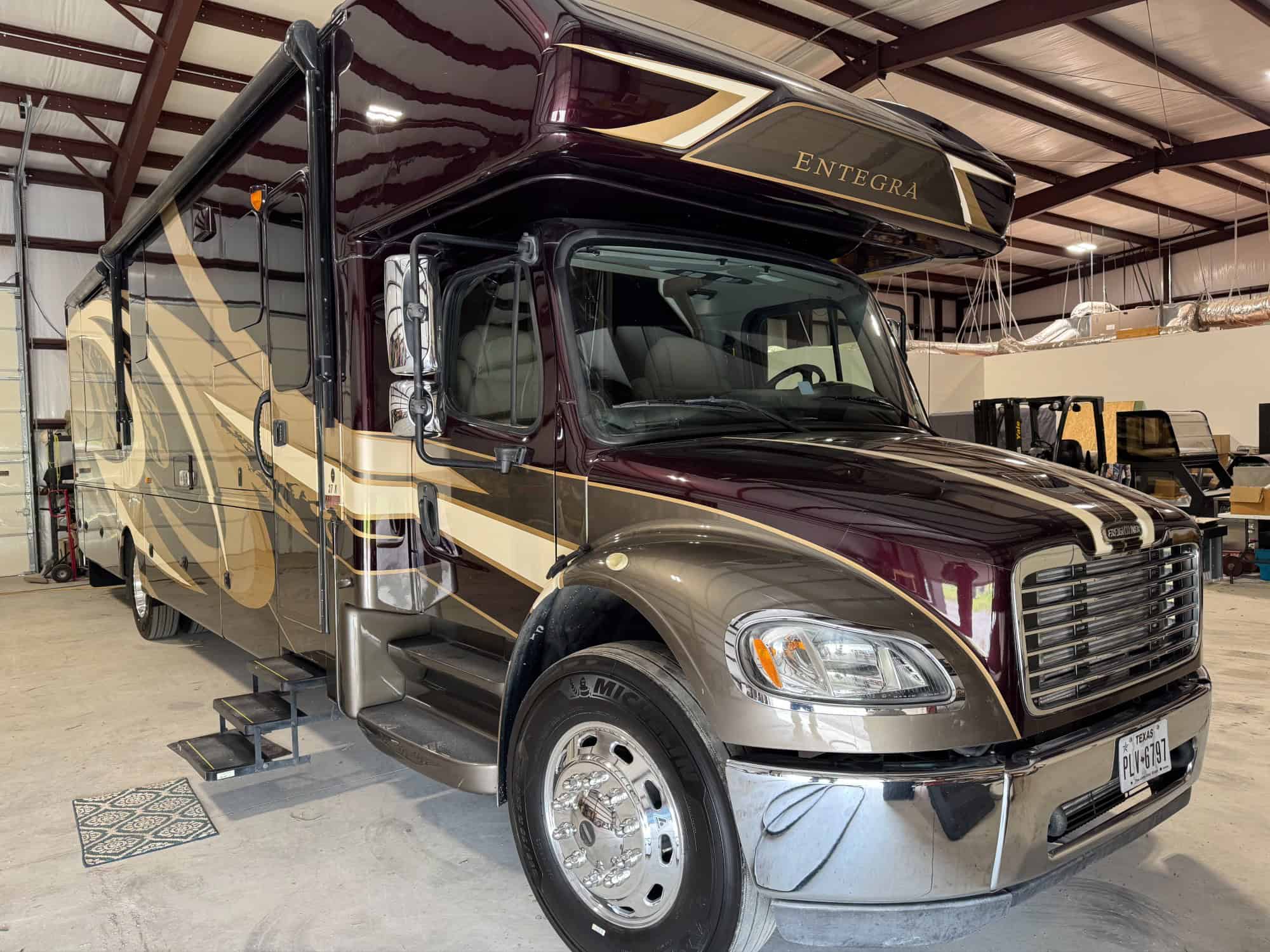 The 2020 Entegra Accolade is a Super C diesel motorhome, built on a Freightliner chassis and powered by a Cummins 6.7L ISB diesel engine (around 360 HP), designed for towing power and long-distance travel, featuring things like rear air suspension, full air brakes, and a large fuel tank for diesel operation.