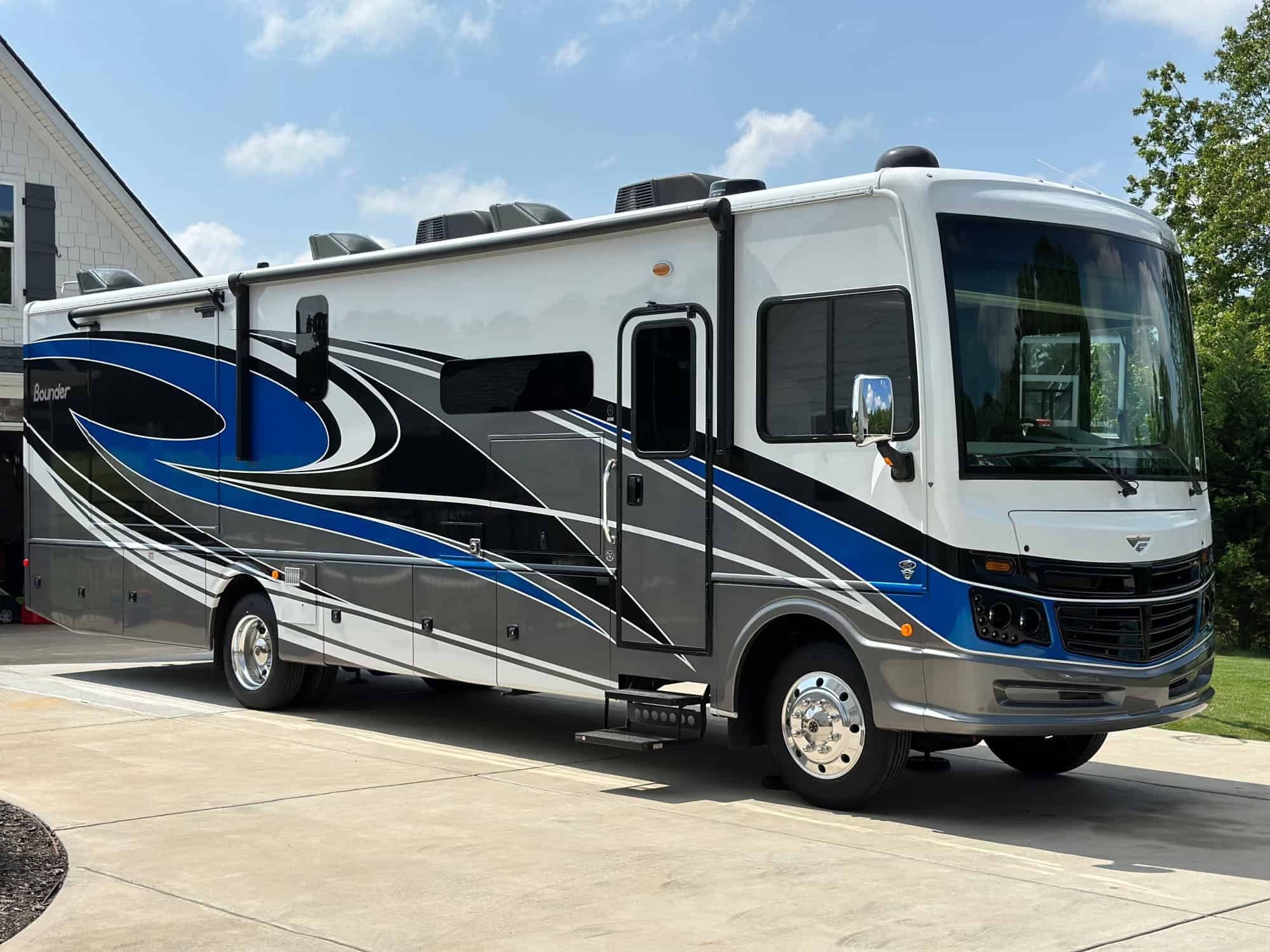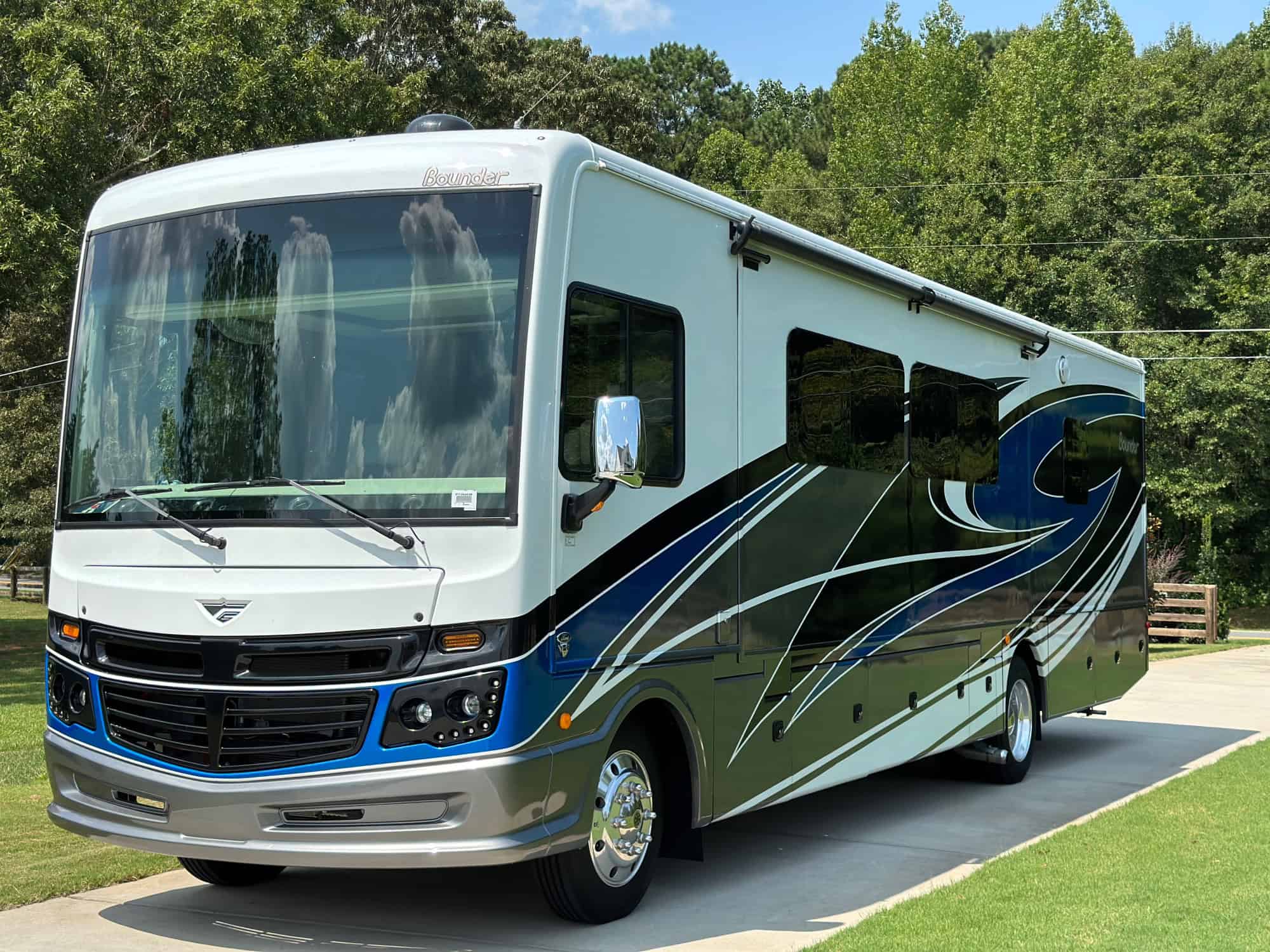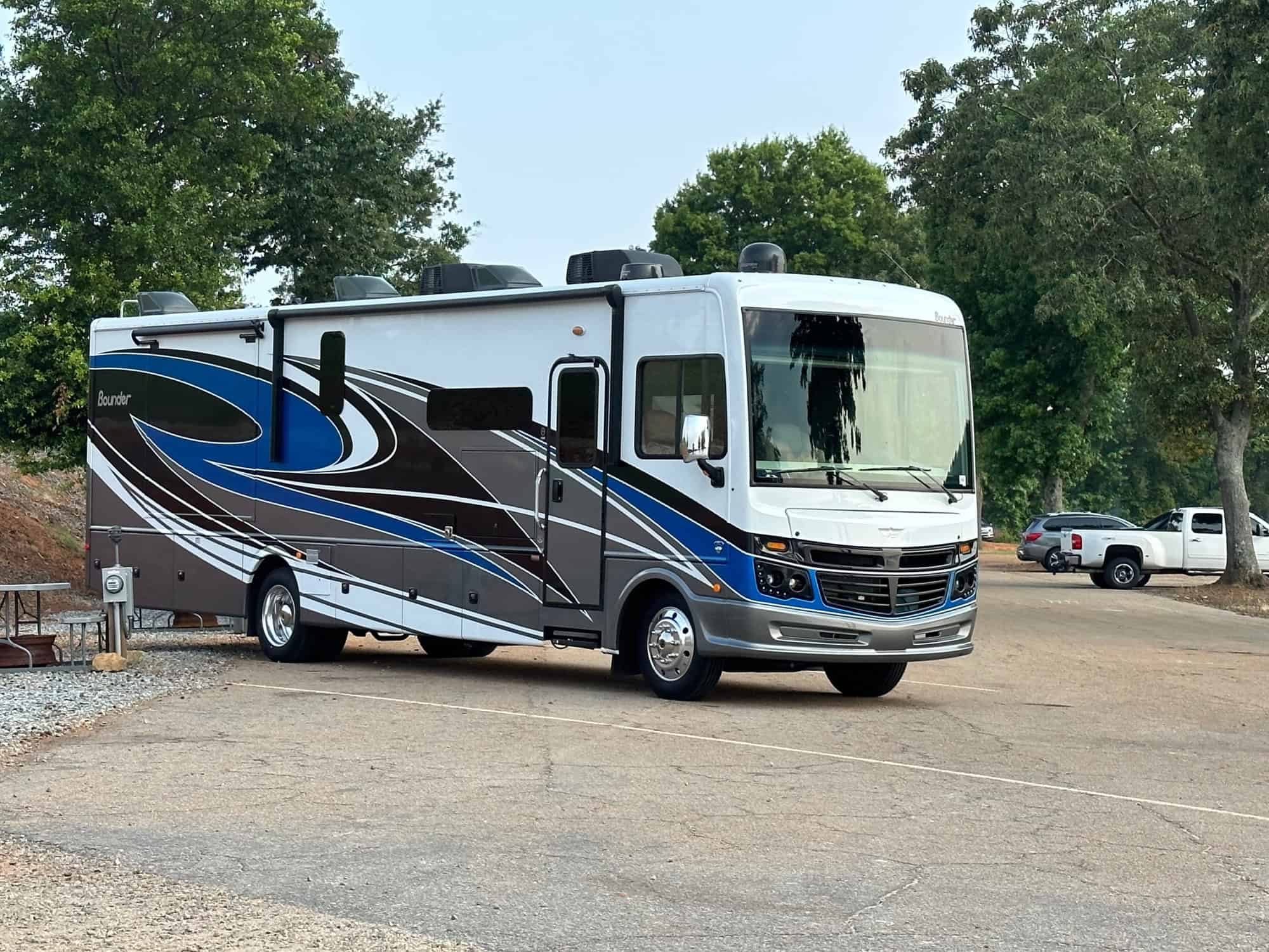 *Updated Price* Selling our 2021 Fleetwood Bounder 35K Class A Motorhome which our family has enjoyed greatly the last few years. It features a beautiful blue/black/grey exterior body paint, two slide outs, a full bath and half bath, king size bed, full size refrigerator/freezer combo, slide out awnings, electric fireplace, backsplash and much more. It easily sleeps 5 with the drop down bed above the driver seat as well as dinette and sectional that convert into additional sleeping areas. The Motorhome is powered by a Ford 7.3L V8 and has 20,200 miles. Everything on the Motorhome functions as it should, no issues in great condition. The RV is located in Brooks, GA about an outside of Atlanta.