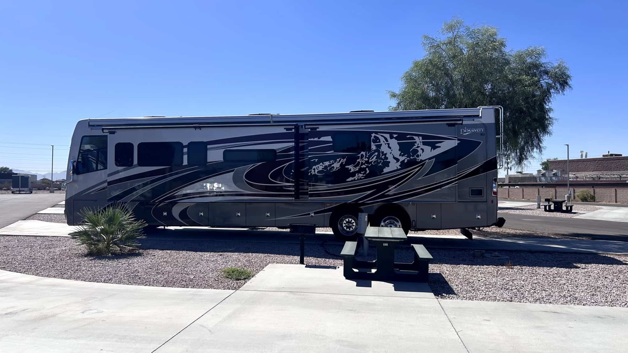 Plumbing: 105-gallon fresh water tank, a whole-coach water filtration system, and an Aqua-Hot 400D for unlimited hot water.