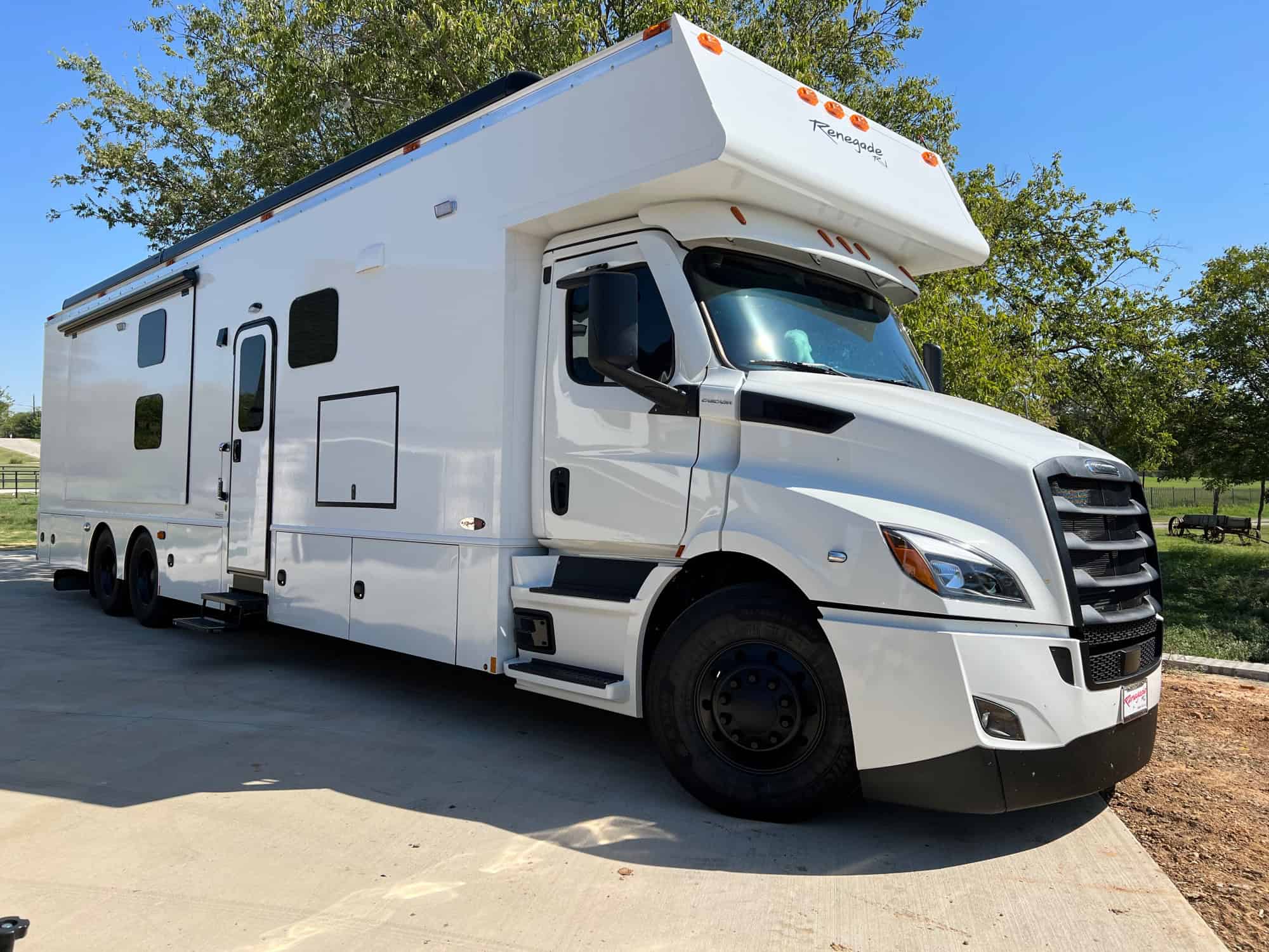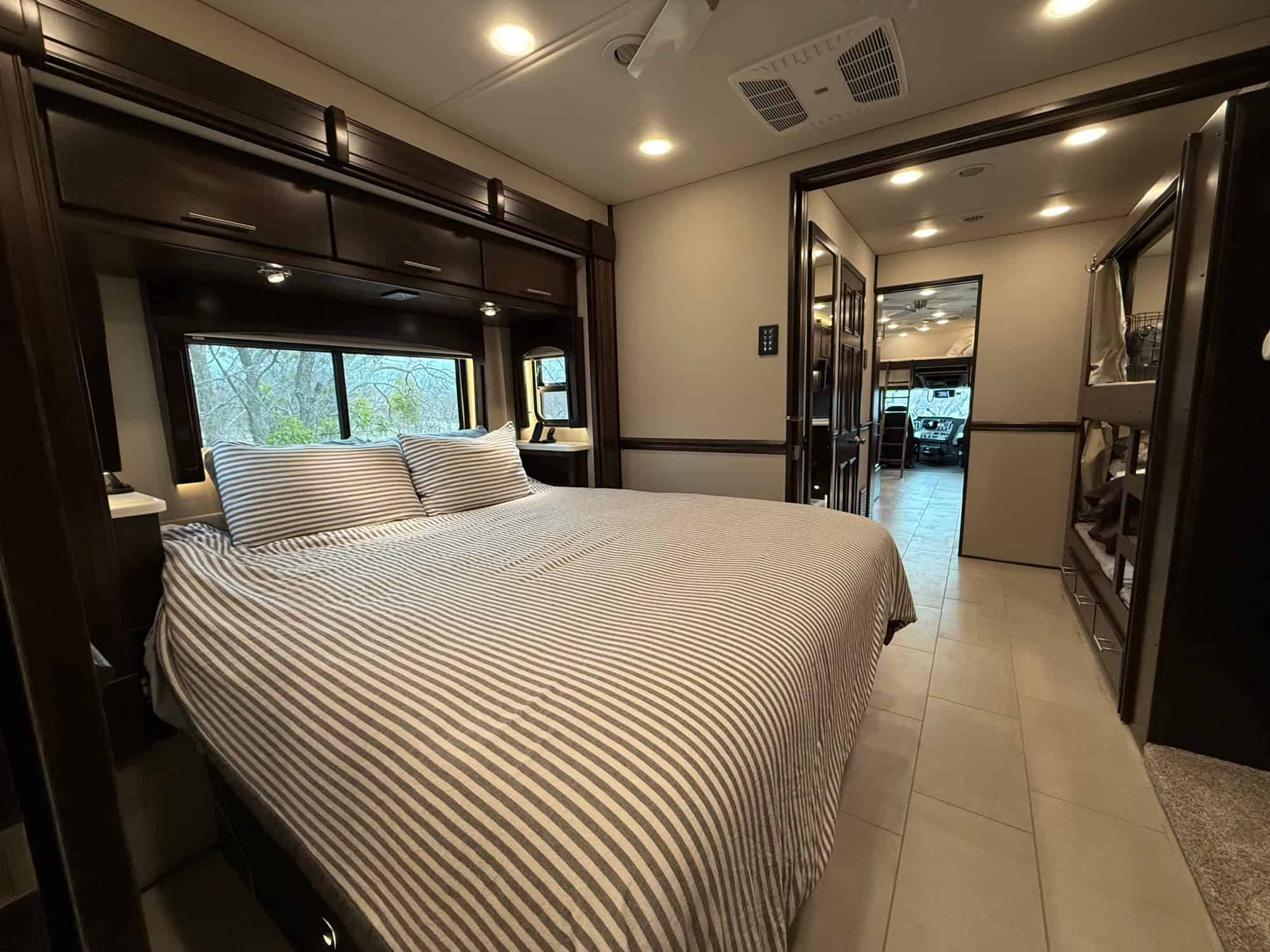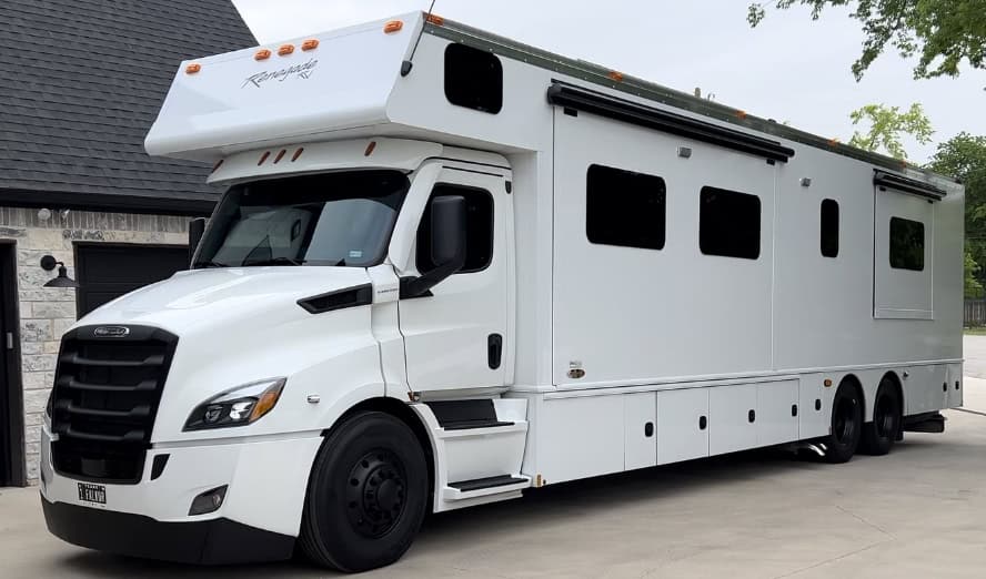 Loaded Bunk model with 2 full baths, washer and dryer, sleeps 10. 150 gallon freshwater 75/75 grey black. Dealer installed options: blackout kit, Starlink WiFi , EZ starts on heat pumps, CB Radio. This is the last year model of the spray foam insulation. Heats and cools in extreme conditions. Always kept inside when not in use. DD13 525 hp with Allison 16,000 miles on coach and 125 hrs on the 12.5kw generator with 50 amp buddy plug for another RV or trailer.120 gallon fuel tank. 525watts of solar, 3 big lithium house batteries and (2) 3,000 watt victron inverters, heated floors, aqua hot 450 (electric/ diesel fired). I wasn’t satisfied with the factory horn so it might be mistaken for a locomotive. Ceramic window tint on cab.